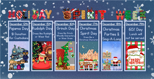 Wednesday, December 17 - Christmas Spirit Day (Dress as a Holiday Character)